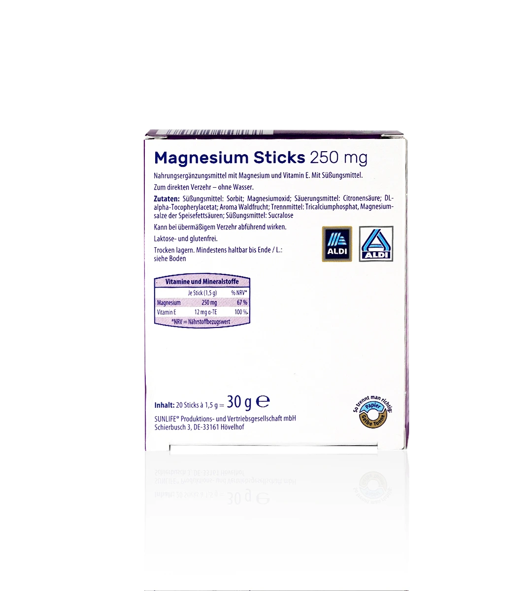 معمولاً یک استیک در روز کافی است (۲۵۰ میلیگرم منیزیم = نزدیک به ۶۵٪ نیاز روزانه بزرگسالان).