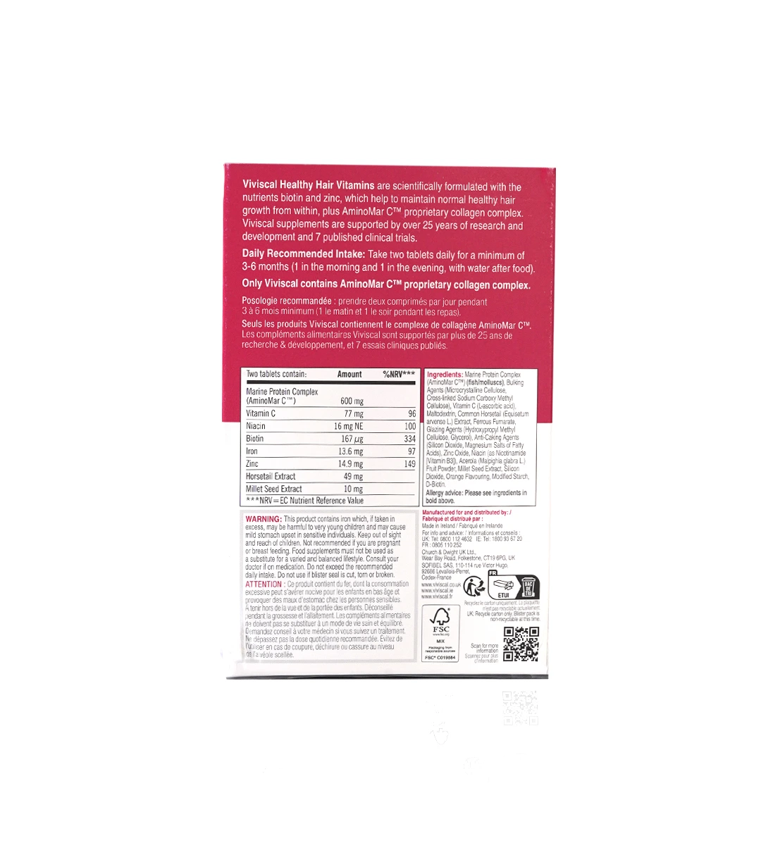 همچنین تنها مکملهای Viviscal دارای ترکیب اختصاصی کلاژن AminoMarC میباشند.