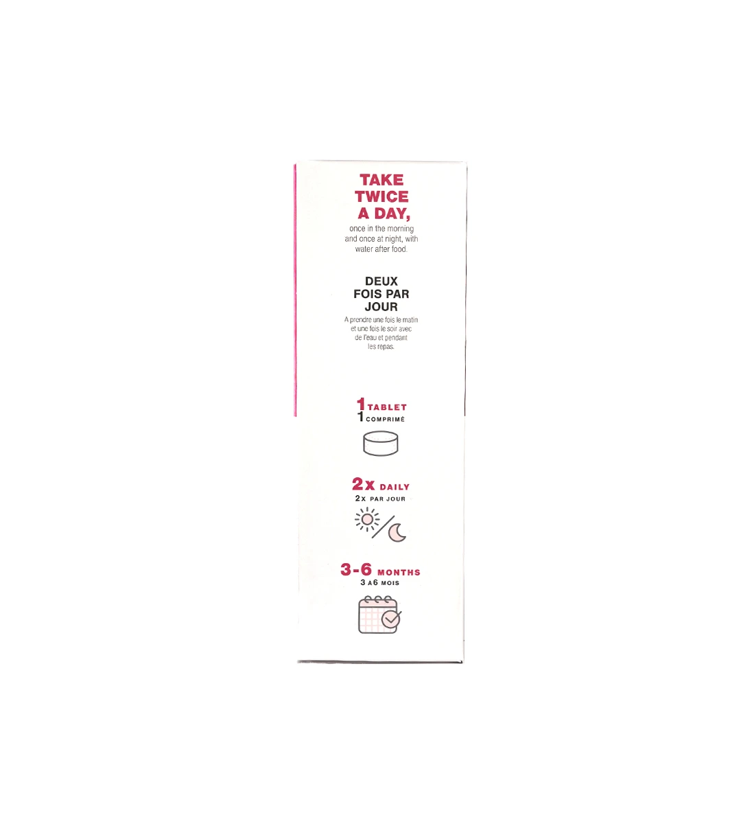 📌 روزانه ۲ عدد قرص (صبح و شب، بعد از غذا) به مدت حداقل ۳ تا ۶ ماه مصرف شود.